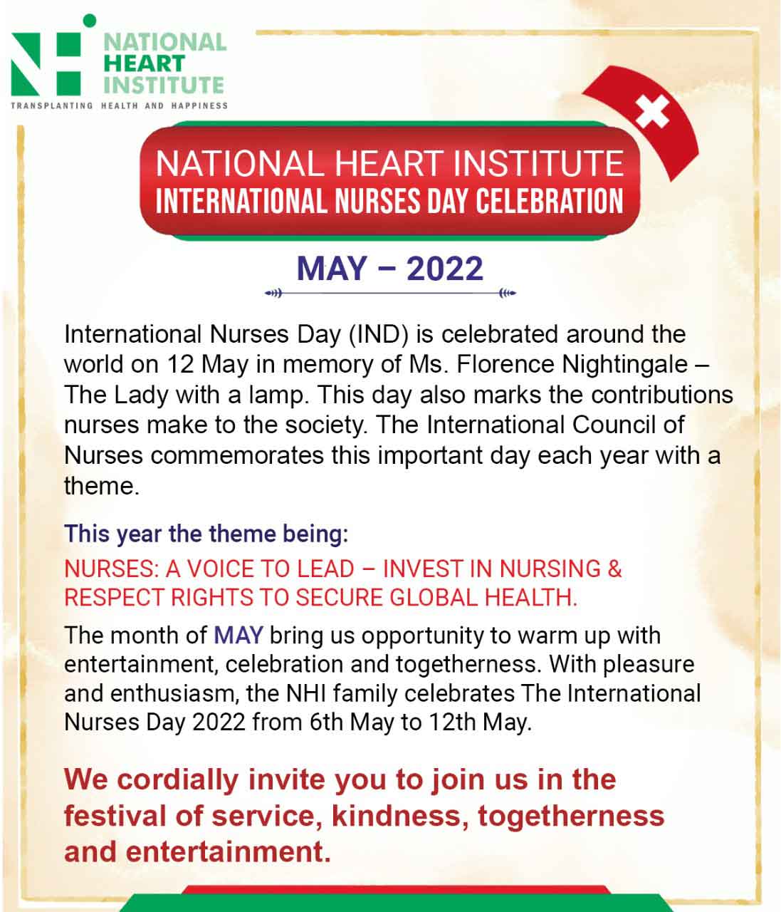 NATIONAL HEART INSTITUTE INTERNATIONAL NURSES DAY CELEBRATION MAY – 2022